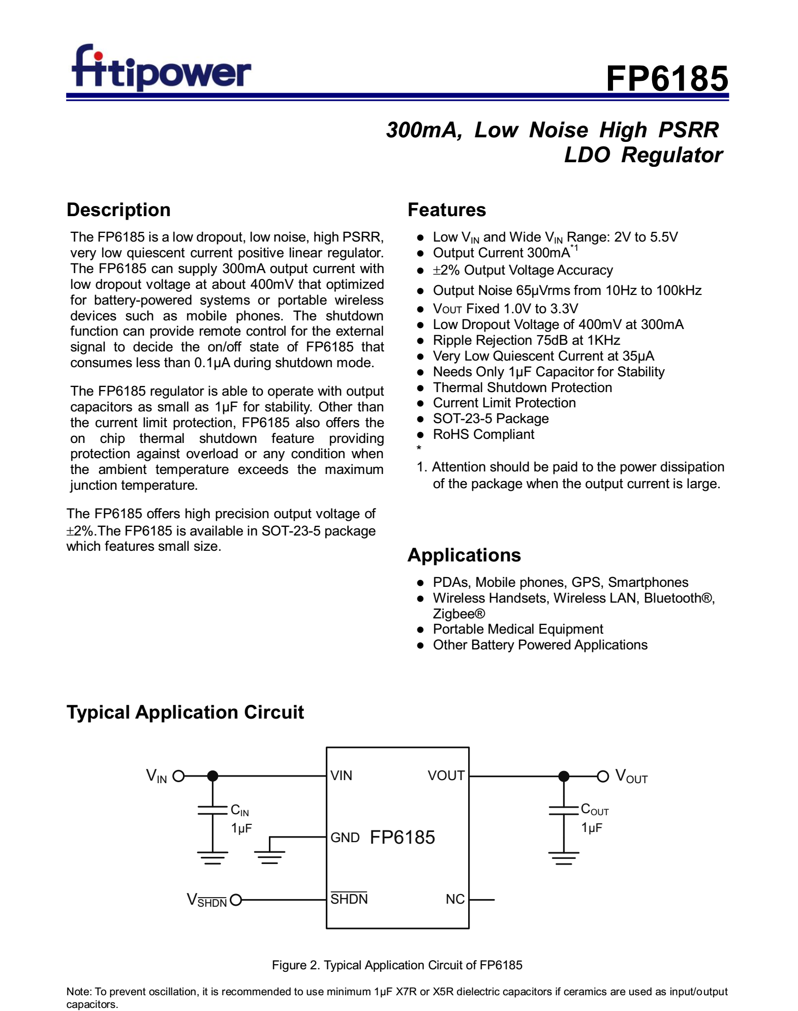 FP6185-33S5,LDO稳压IC,输出电压3.3V,SOT23-5封装。