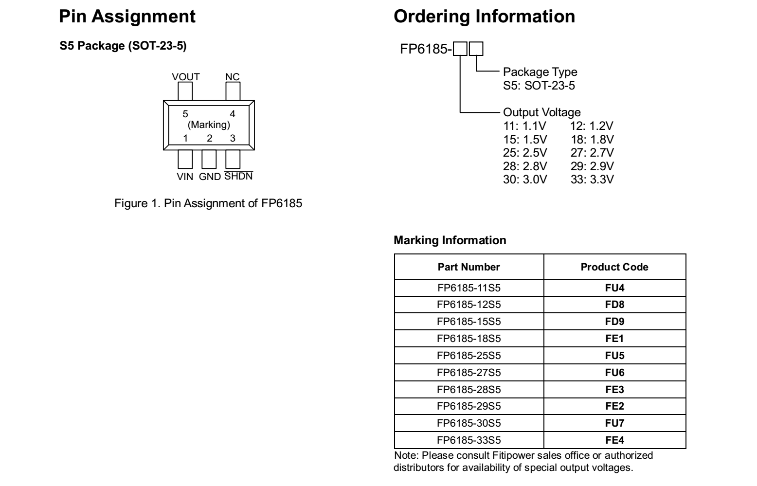 FP6185-18S5,LDO稳压IC,输出电压1.8V,SOT23-5封装;
