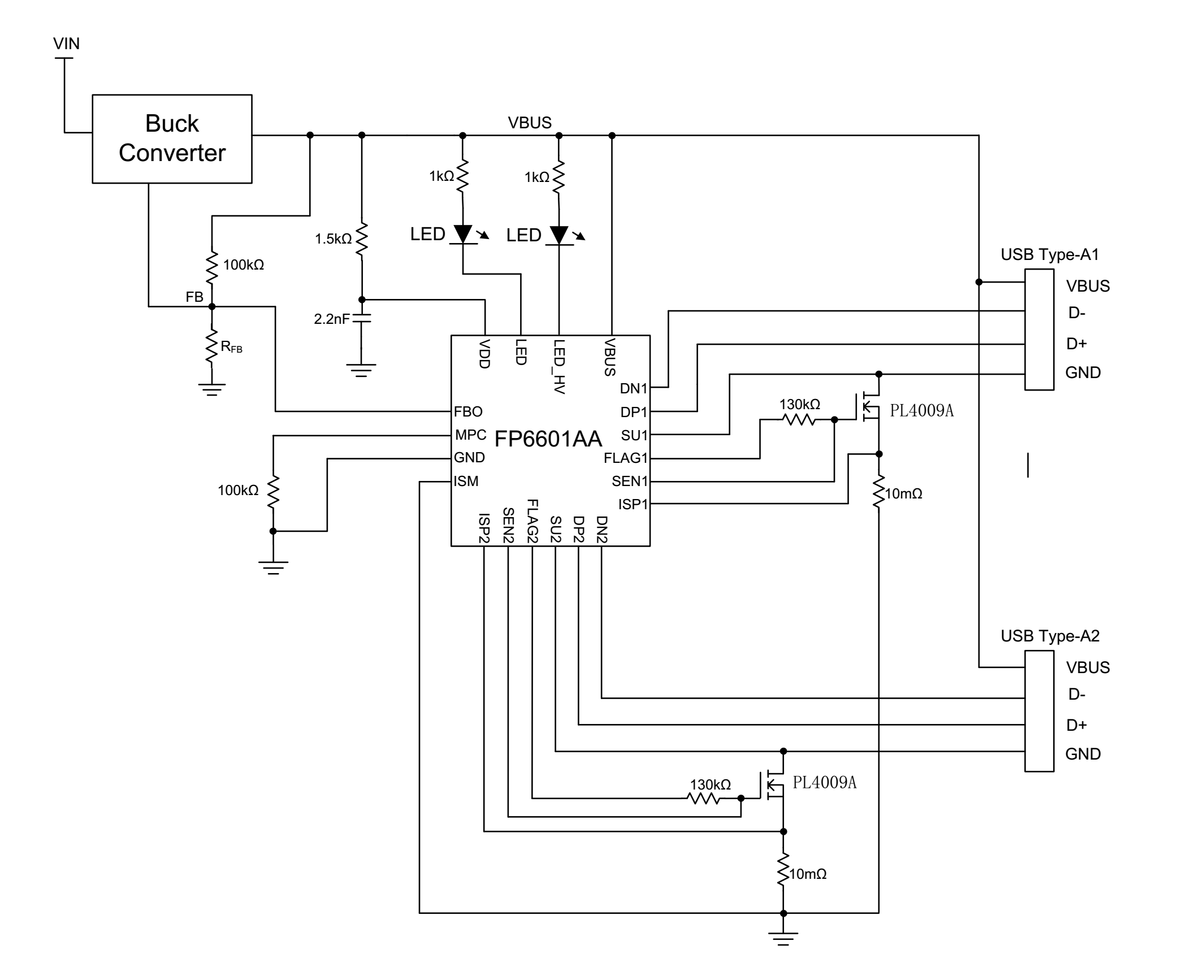 FP6601AA是一种双端口USB A型快充充电协议控制器,自动检测USB口的插入,自动快充充电协议的检测:高通QC3.0,高通QC2.0,华为FCP,三星AFC,自动监控USB端口的D+,D-数据和根据不同的手机和设备的取决,调整输出电压。