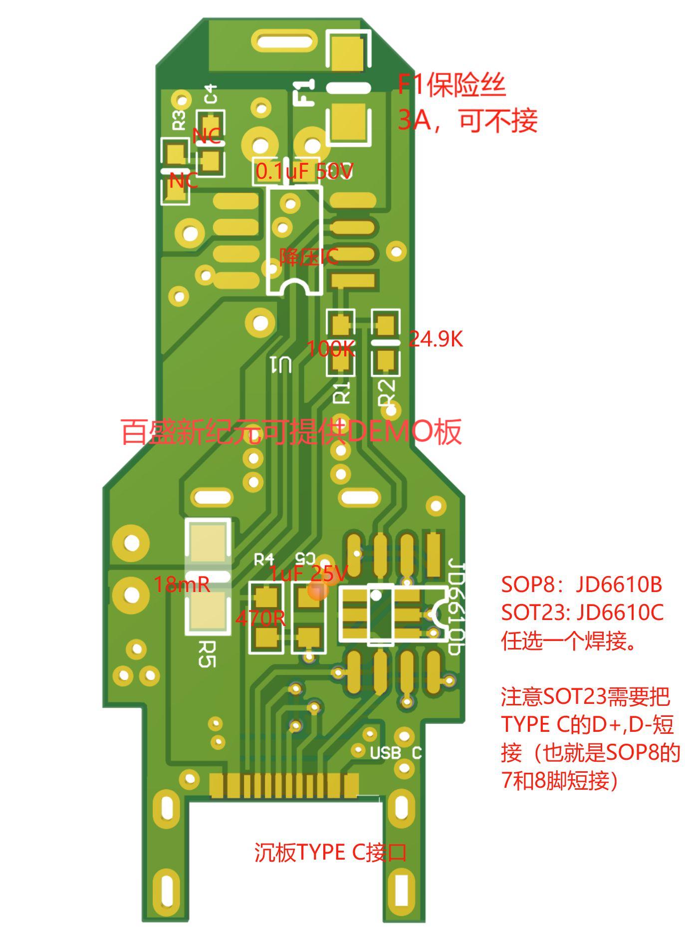 - 基於JD6610繫列芯片(如JD6610BASO或JD6610CAS6)和PL2733C芯片(如果其適用於該設計)設計20W車充DEMO闆。
